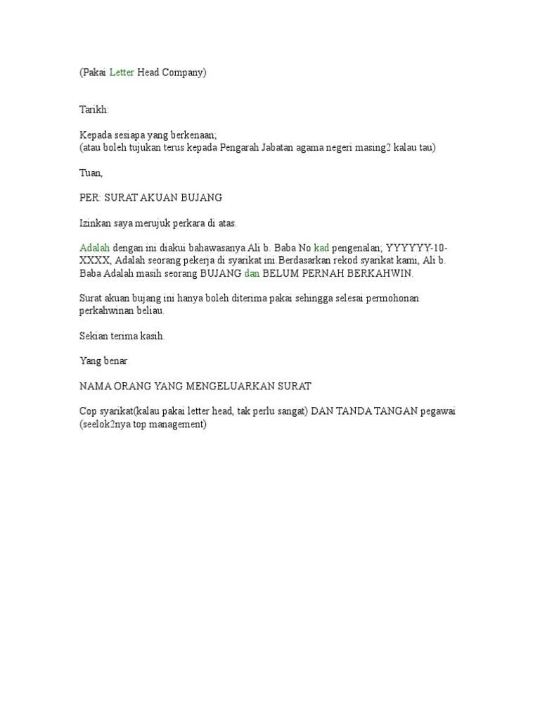 Contoh Surat Pengesahan Bujang Oleh Majikan : List Of Surat Akuan Bujang Terengganu 2022